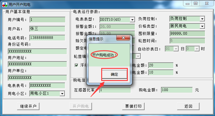 系統(tǒng)提示“開戶購(gòu)電成功” 單擊“確定”,就開戶完成了。