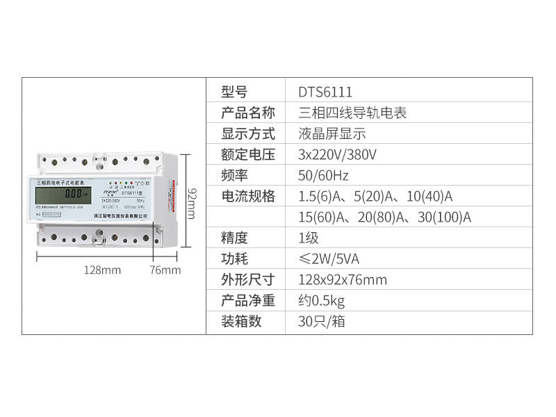 型號:DTS6111-7三相導軌式電表